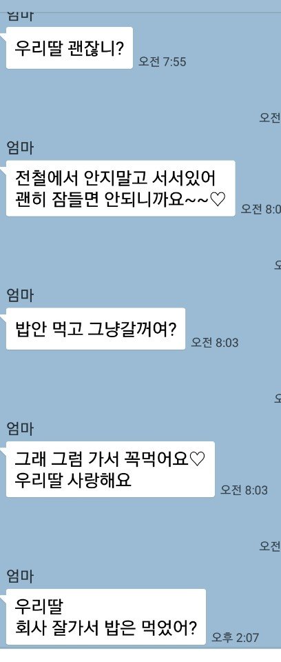 그렇게 밤을 또 꼴딱 새우고는 아침에 출근하는데 엄마한테 카톡이 왔다.