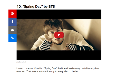 둥인지 모르겠는데 미국에 엄청 큰 언론(?) 사이트 벚으핃으에서 봄 노래 추천에 봄둥이!!