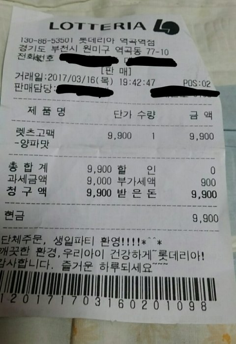 영수증 사진도 첨부합니다.