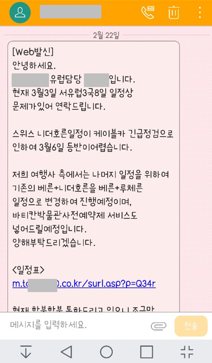 그런데 왠걸.출발도 하기 전부터 일정이 변경됐다고 연락이 왔음.