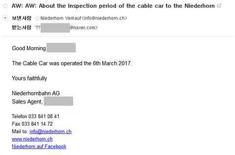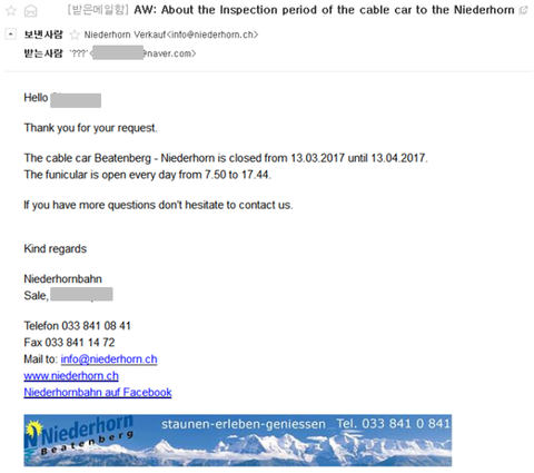 대망의 두번째 메일에서 확답을 받았음.2017년 3월 6일엔 니더호른 케이블카 긴급 점검 따위없.었.던 것임!!!!!!!!!!!!!!!!!!!!!!!!!!!!!!!!!!!!!!!!!!!!!