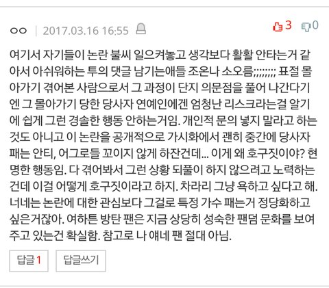 우리가 왜그렇게 행동했는지 말로 잘 풀어주신분. 실은 언어력이 답이없어서 할말은 많은데 조리있게 못해서 가만히있었거든, 근데 저댓글이 우리입장 제대로얘기해줬오