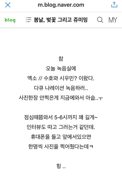 시우민 준면이랑 다큐 나레이션 녹음했대
