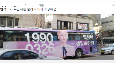 근데 진짜 버스가 이쁜가봐 서울전역에서 요 버스를 보고 민석이 생일을 알게되게찌