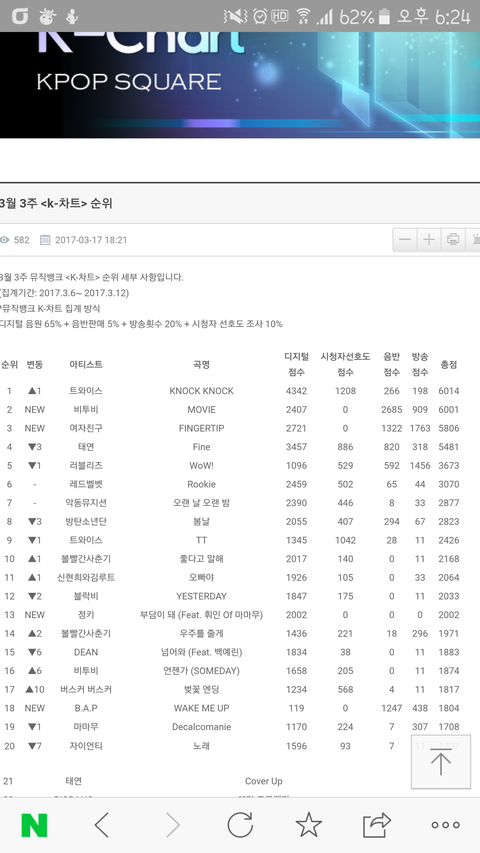 뮤뱅 3월3째주 케이차트