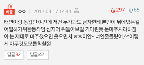 저사진 올라왔던 글에 베댓수준 진짜 놀랍다놀라워ㅠㅜ 이러니까 판이 욕먹지 ㅋㅋㅋㅋㅋ몇몇판녀들 판 욕먹게 하지마 ㅠㅠ