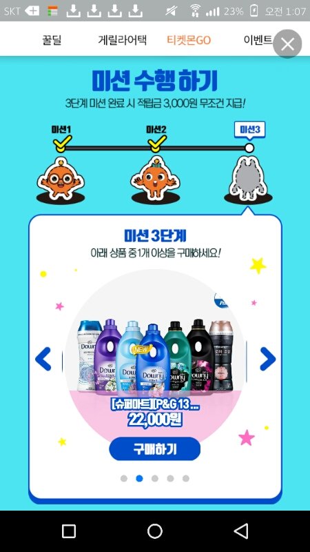 티몬에서 뭐 티몬고?인가 뭔가 세마리잡으면 적립금 3000준다해서 들어갔는데 퀴즈푸는거여서 2단계까지 막 인터넷 뒤지면서 겁나게 열심히 풀었는데 읭?????겁나 마지막 3단계가 물건을 구매하래 미친ㅋㅋㅋㅋㅋㅋㅋㅋㅋㅋㅋㅋㅋㅋㅋㅋㅋㅋㅋ현타와서 잠깐동안 멍했다....근데심지어 저것들 가격이 다 3000이야 잠깐이라도 속나서 너무 열심히 문제를 푼 내가 다 밉다