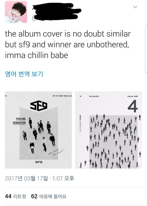 위너 데뷔 앨밤이랑 에세프9 앨범이랑 더 똑같구만; 흑백이면 다표절임?