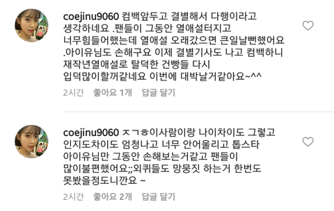 진짜 소름돋는다 봉갤 네이트판 유애나 인스타그램 몇개를 돌아다니는거야..ㅜㅜㅜㅜㅠ열애설로 탈덕한 것들은 건빵이라고 부를 자격도 없고 평생 여돌이 자기 여친이라고 위안하면서 착각하며 살았음 좋겠고 외퀴 망붕 없는건 개이득인 부분이였는데 암튼 아 진짜 쟤는 팬인것같긴한데 약간 사상 자체가 이상한 애인듯