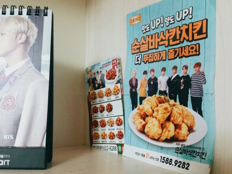 탄이들 책장 속 비비큐 광고지... 애들 얼굴 요만큼이라도 나오면 안 버리고 고이고이 나둔다