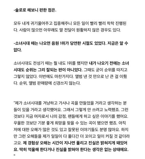 네가 나가고 우리는 멤버사이 끈끈한 가족같은 걸그룹이란 호칭을 잃고 비즈니스그룹이란 호칭을 얻었어. 이외에도 하나부터 열까지 헤아리자면 끝이 없겠지.