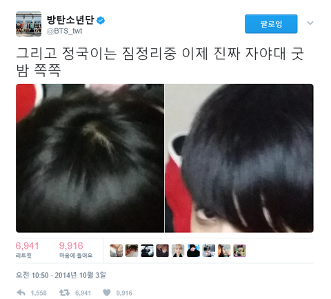 정국이 맞는데 많이들 처음 보는 것 같길래 짹짹이 가서 캡쳐도 해왔고 최대한 많이 보라구 글도 올려!!