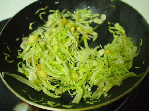 양배추, 달래 다 넣고, 소금 후추 간 약간 해주고 볶아서 따로 둡니다.
