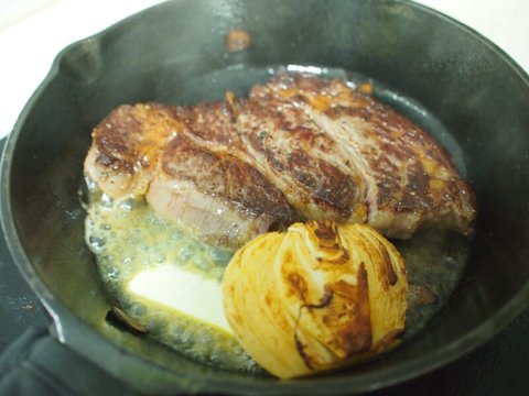 1분 20초 뒤 뒤집고, 버터를 추가해
