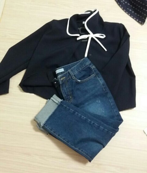 저블라우스는 꼭 입어야하고 검은바지랑 남색슬랙스도 있엉 바지는 일자핏인데 저거보다 검은빛이 더 돌아!