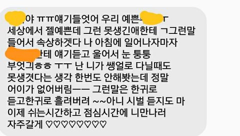 나 진짜 친구복 많은듷 진짜 3시간정도 운 것 같음 진짜 어제 너무 힘들어서 너네한테 말하고 싶었음ㅠㅠㅜㅜ진짜 짜ㄷ증나 인생 진짜 니네도 고민같은 거 친구 한 번 믿고 말해보셈 진ㅋ자 어제 속상한데 ㅅ행복했음 같이 울어주고 내가 욕 먹으면 화내줄 친구 있는 게 진짜 좋은것갘음