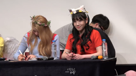 계속 팬들 못보고 고개 푹 숙이고 싸인만 하고있는 미주ㅠ