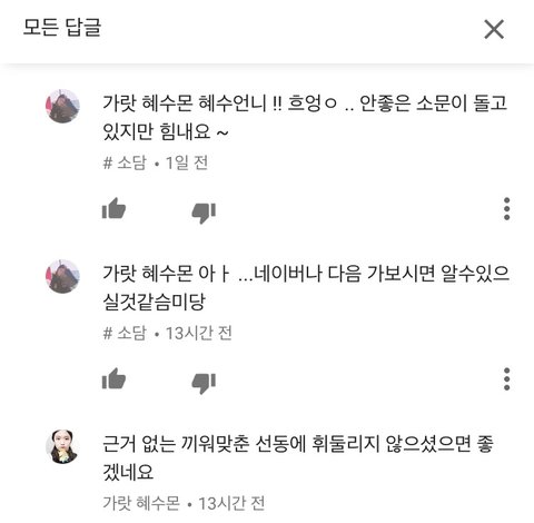 남의 유트브영상에 댓글 달고 다니더랑