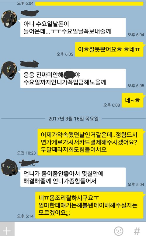 다음날 전화와서 월급들어 오면 첫빠따로 준다했다함