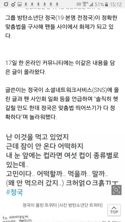 정국이 이 기사 봤어? 둥인가ㅋㅋㅋ