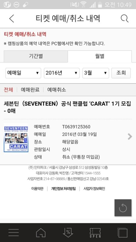 그분은 저게 티켓배송이아니라서 취소라고되어있는거래. .