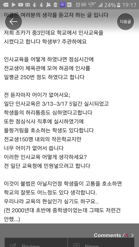 중학교 인사교육?