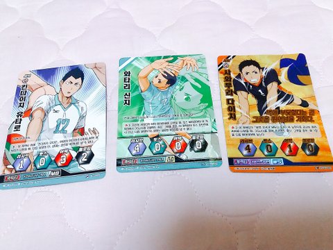 특이한 애들운 이거 3개! 킨다이치 유타로는 프로모(p) 와타리 신지는 레어(r) 사와무라 다이치는 하이(h)임! 다이치 ㄹㅇ 금색이 빤짝빤짝하고 이뿜ㅠㅠ 나중에 다 살꺼얌><