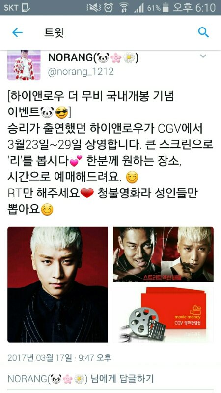 승리보러 영화관 갔는데 영화시작 전 광고에 지디 레볼루션 광고나오면 어쩌지ㅠㅠㅠㅠㅠ? CGV랑 레볼루션이랑 손 잡아서 진짜 나올 것 같아 어떡해.. 그럼 나 설레 죽음> < ❤