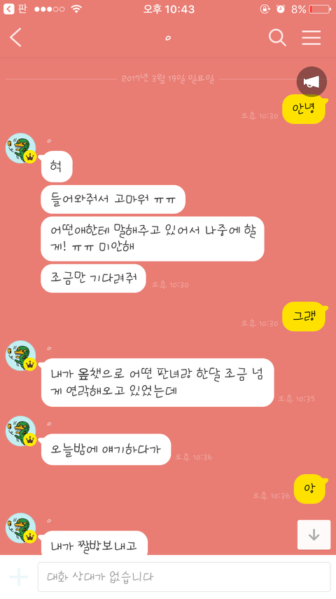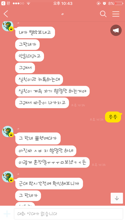 ㅈㄱㄴ 아니 오늘 십대판보다가 고민 있다고 옾챗 좀 들어와달라기에 옾챗 들어갔는데 얘 겁나 이상함;;; 말도 맥락도 이상함