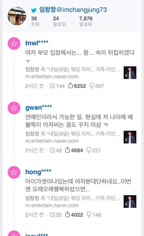 근데 얼마 전에 창정이형 결혼할때 악플보고 놀랐잖아