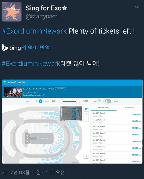 엑소가 미국에서 콘서트 하는데 표가 안팔려서 지금 난리남