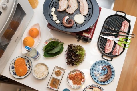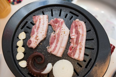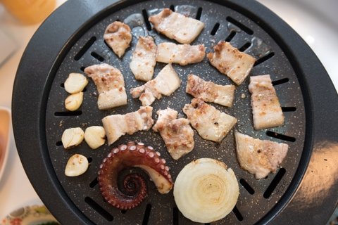 주말 고기가 먹고 싶어 제주오겹살 사서 구워 먹었습니다.젤 좋아하는 갈릭허브 솔솔 뿌려 숙성해주고..새로 구입한 삼겹살그릴 테스트도 할겸..식당처럼 잘 구워지네요 ㅎㅎ오겹살기름 나올때 돌문어 같이 구우면 쫄깃쫄깃 식감최고~~