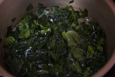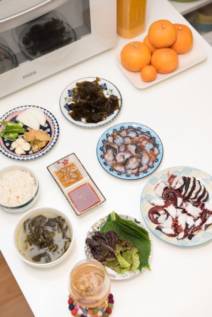 제주는 지금부터 5월달까지 미역이 제철입니다.지금까지 건조미역만 사용해서 미역국 끓였는데..생미역으로 미역귀까지 넣어 푹 끓이니 맛 최곱니다..생미역 초장에 찍어 먹어도 최고죠!!홍해삼 돌문어도 같이 꺼냈더니 해물밥상이네요 ㅎㅎ
