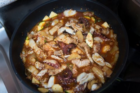 문어오겹살 볶음오겹살 구워먹고 조금 남은거랑 돌문어 넣고 냉장고 털어보니 야채도 좀 있길래만들었습니다.