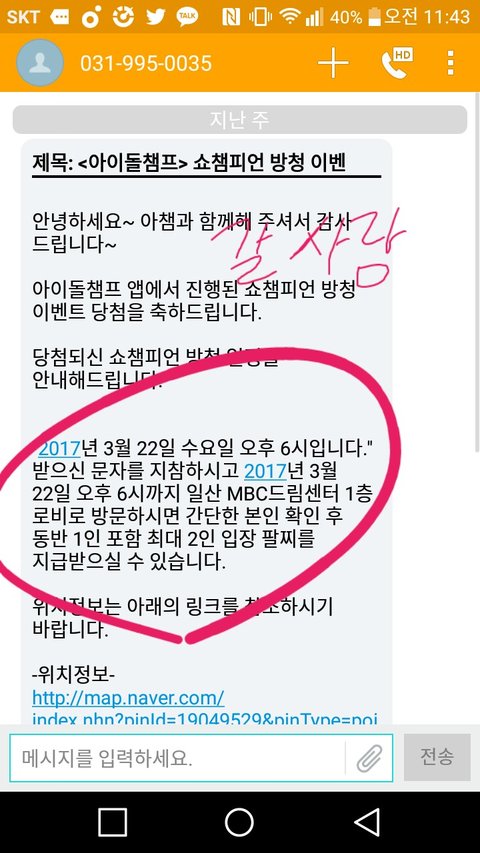 안녕 내가 3월 22일 쇼챔 방청 이벤트 당첨됐는데