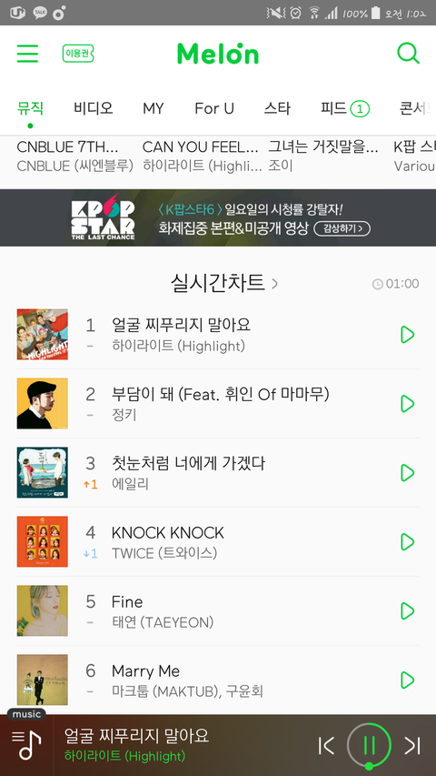 서수 1시차트 1위유지