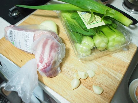 재료는 질좋은 삼겹살, 양파, 파, 마늘, 생강, 청경채, 기타 양념등