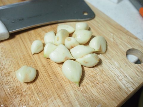 다량의 마늘을 다져서 준비해줍니다.