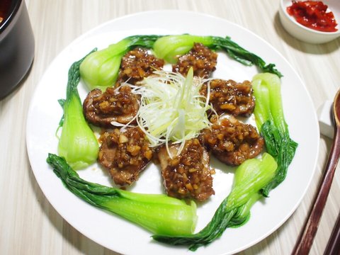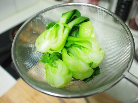 청경채 15초 정도 소금물에 데치고 찬물에 헹궈서,