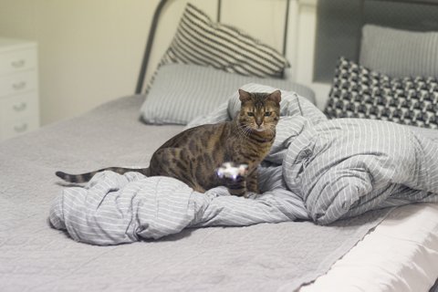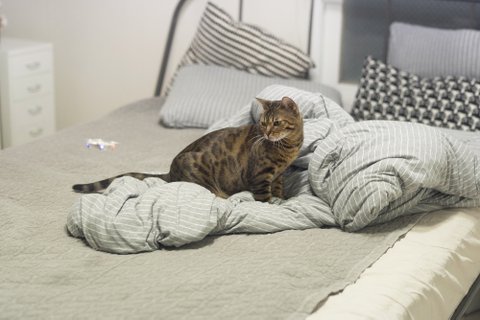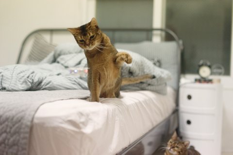 혼자 침대모서리에서 불쌍하게..