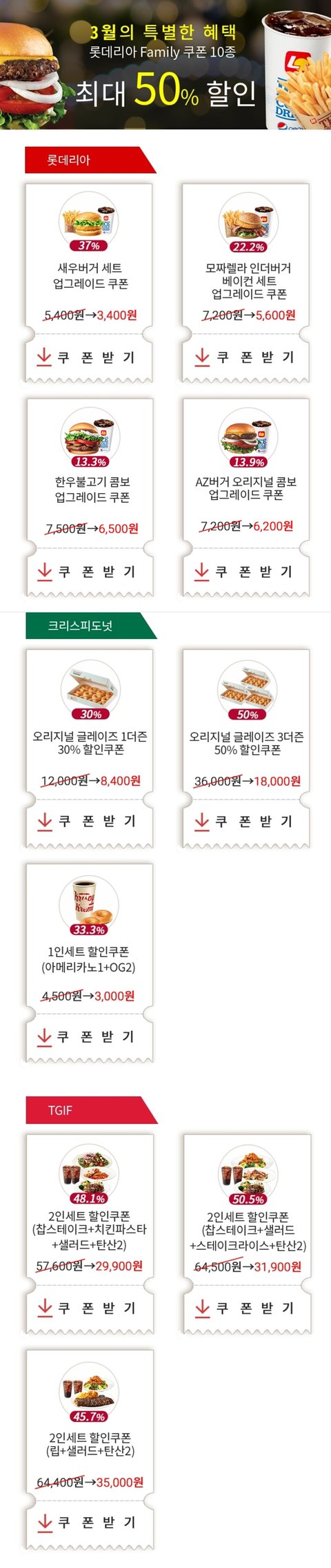 롯데리아, 크리스피도넛, TGIF 할인 쿠폰 인데요~