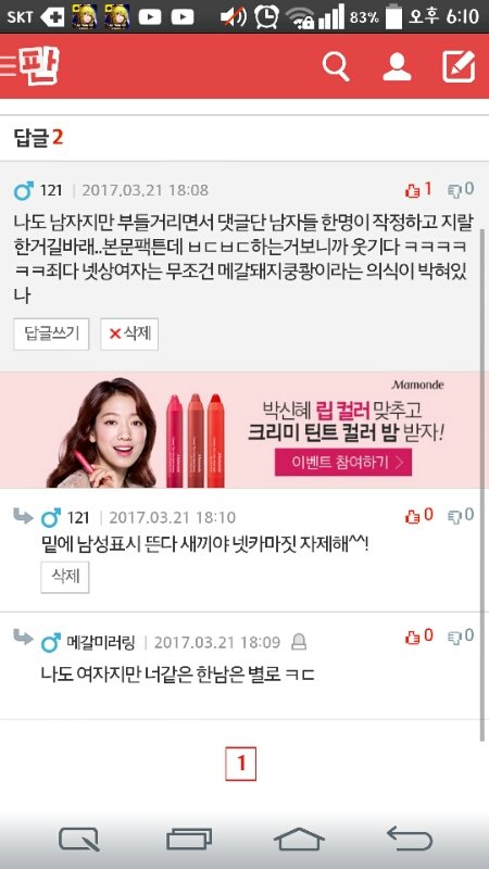 남혐여혐 팩트글에 하다하다 여자인척까지하네 ㅋㅋㅋㅋㅋㅋㅋ
