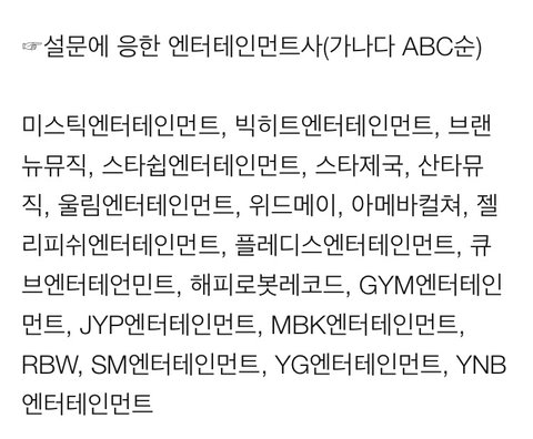 남자아이돌은 18곳의 기획사에서 방탄소년단을