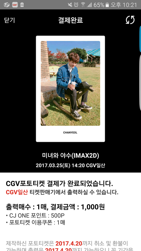 미남과야수 포토티켓만듬 ㅋㅋ찬열이로
