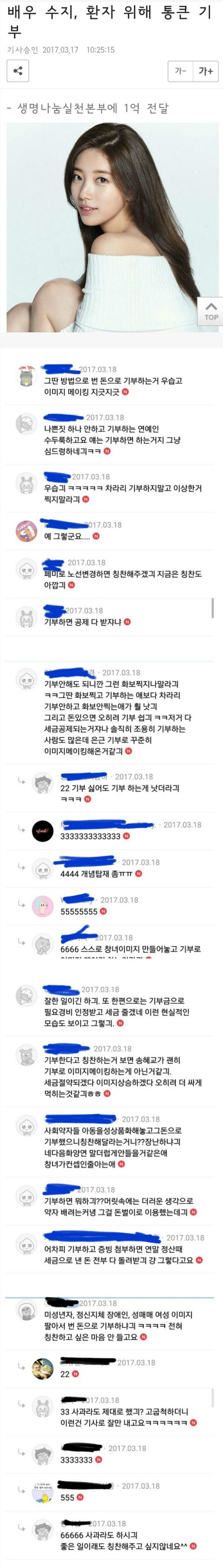 수지 1억 기부에 대한 여초사이트 반응.jpg