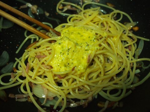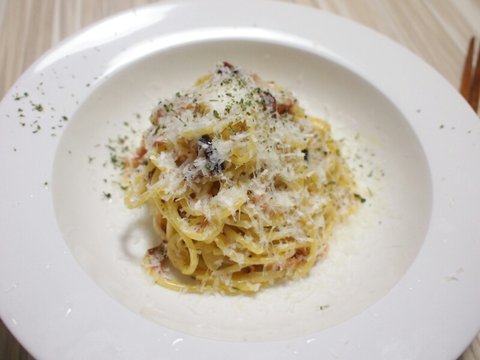 우리나라에서 유행하는 크림파스타가 아닌 진짜까르보나라라고 하는데,