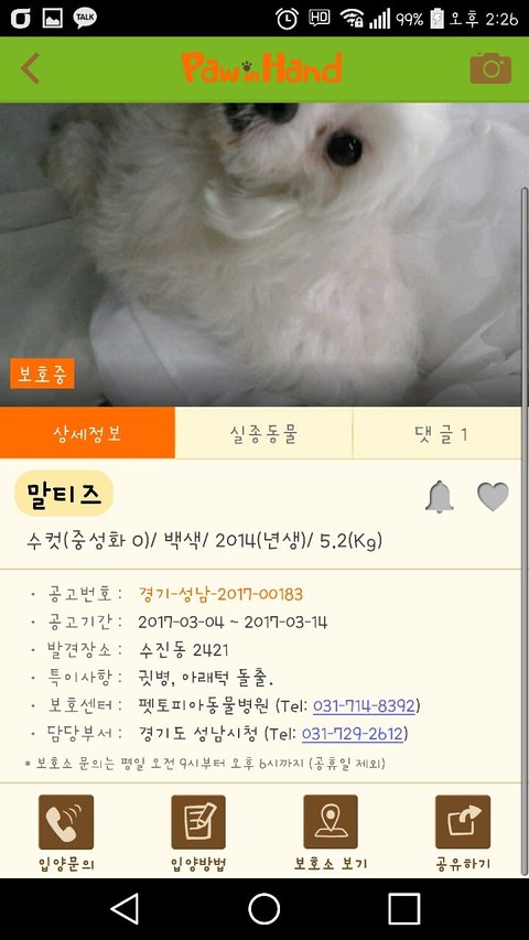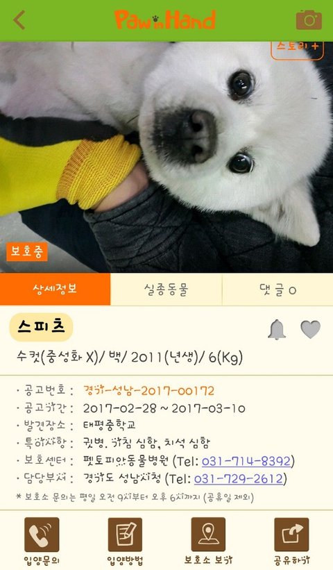 공고기한이 끝나 안락사에 놓였습니다.