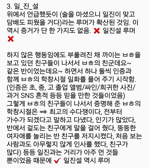 사진 하나 가지고 과거에 학교폭력 저지르고 애들한테 피해주고 다녔던 양아치, 일진, 인성 쓰레기로 애를 만드니까 깔 부분만 까라고 한 거임.