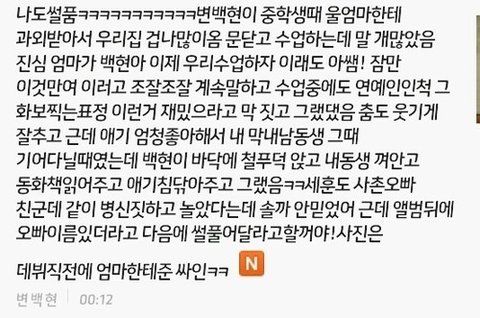 3. 일진 x 양아치 x (인증한 과거글 보면 그냥 두루두루 잘 놀고 성격 좋은 까불이었다고 함*조금만 서치해도 쉽게 찾을 수 있음. 그만큼 동창들이 발 벗고 해명함. 그래서 백현 좋아하는 여자애들도 되게 많았다고 ㅇㅇ)