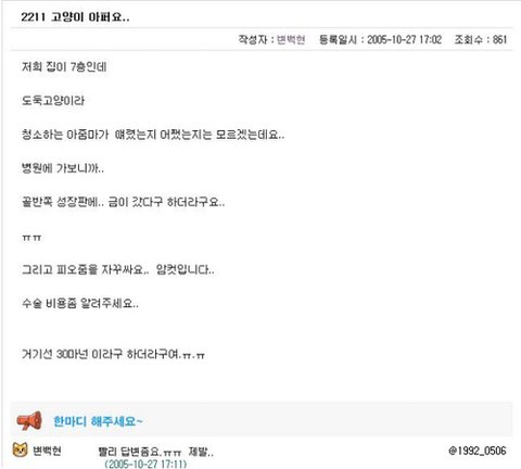 2005년. 자기가 키우는 고양이도 아니고 도둑 고양이 챙기는 백현.